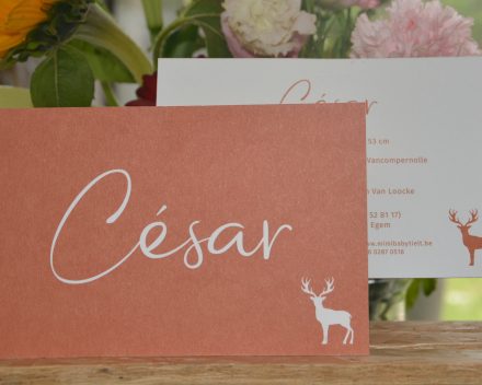 Eén van de mooiste gebeurtenissen in het leven, is de geboorte van een kindje. Dat moet op de juiste manier aangekondigd worden. Of het nu een lief meisje, een stoere jongen of misschien zelfs een tweeling wordt, bij ons vindt u een ruime keuze aan geboortekaartjes, doopsuikerdoosjes, wikkels en stickers. Wij werken voor u een persoonlijk ontwerp uit of drukken uw eigen ontwerp af op het gepaste papier. Te weinig inspiratie? Geen nood, u kan ook een keuze maken uit de reeds bestaande catalogussen van onze partners.